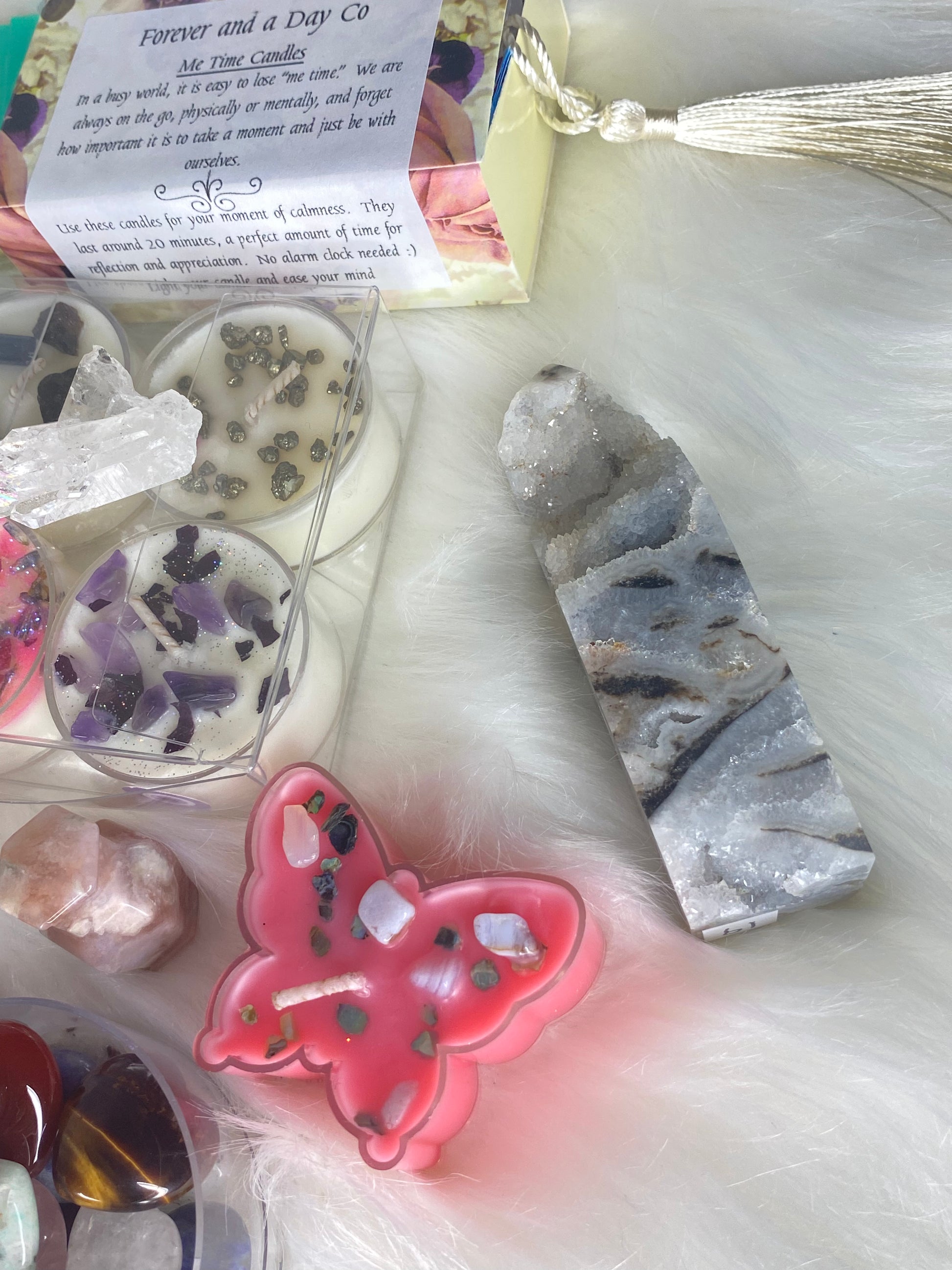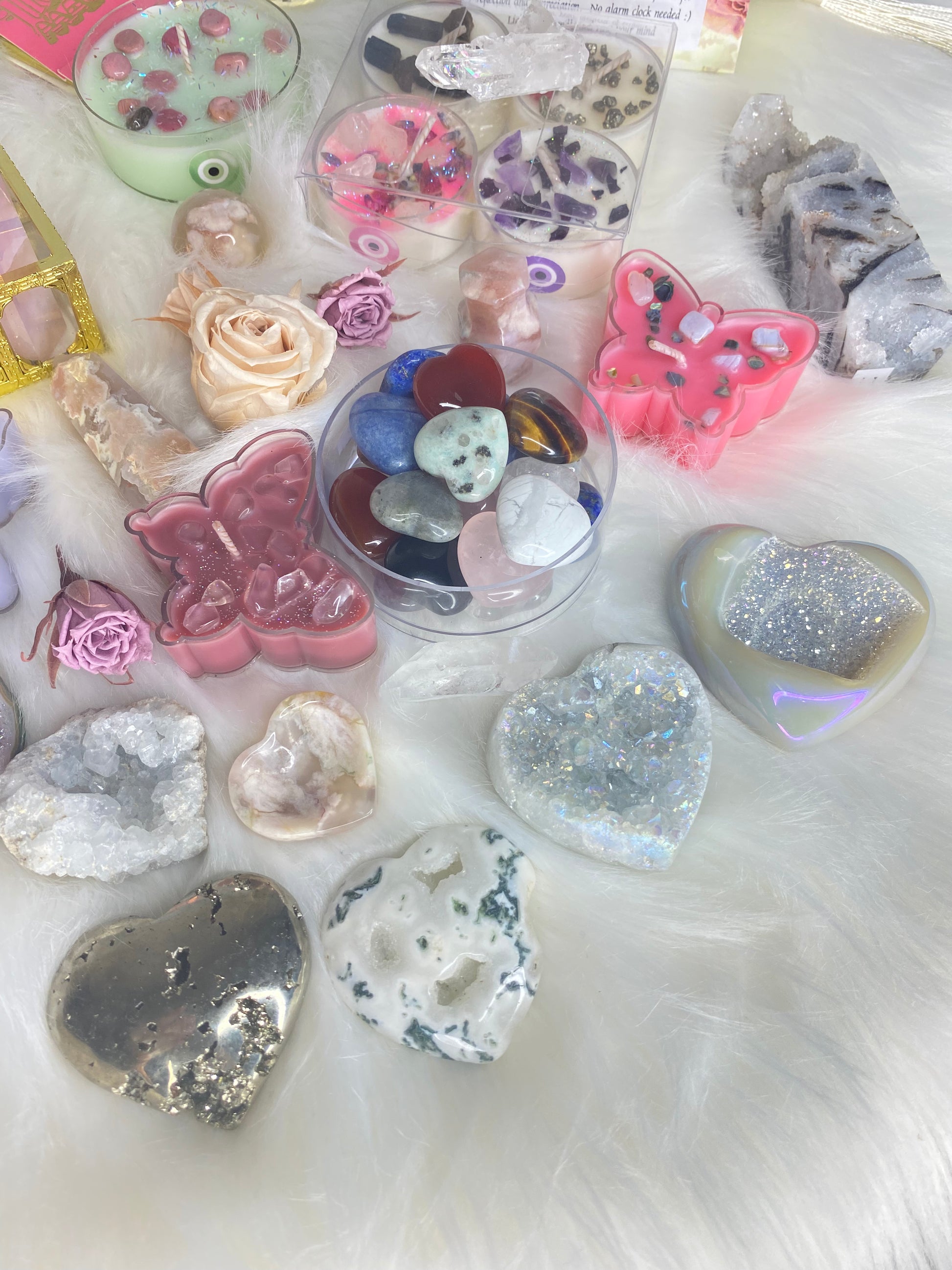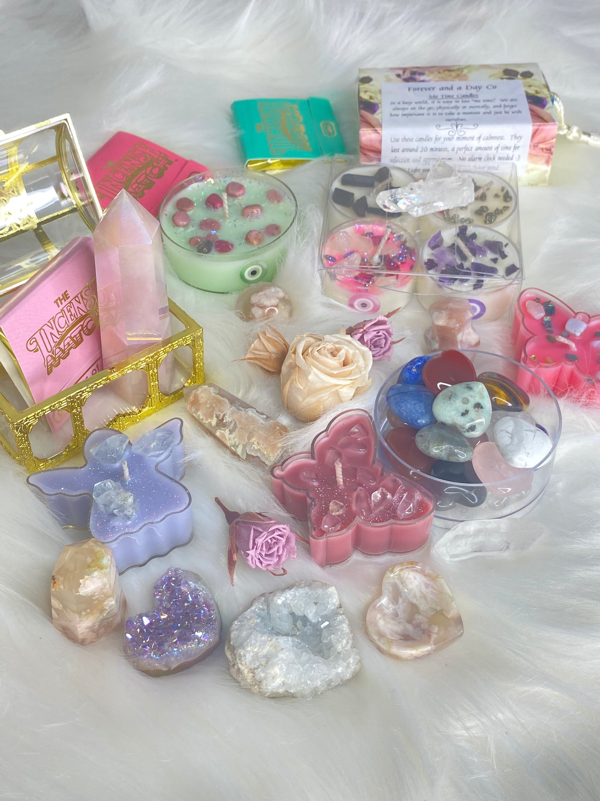 You will receive a range of products. It can be anything from candles to dried flowers, crystals, home trinkets, incense matches, linen sprays and much more!