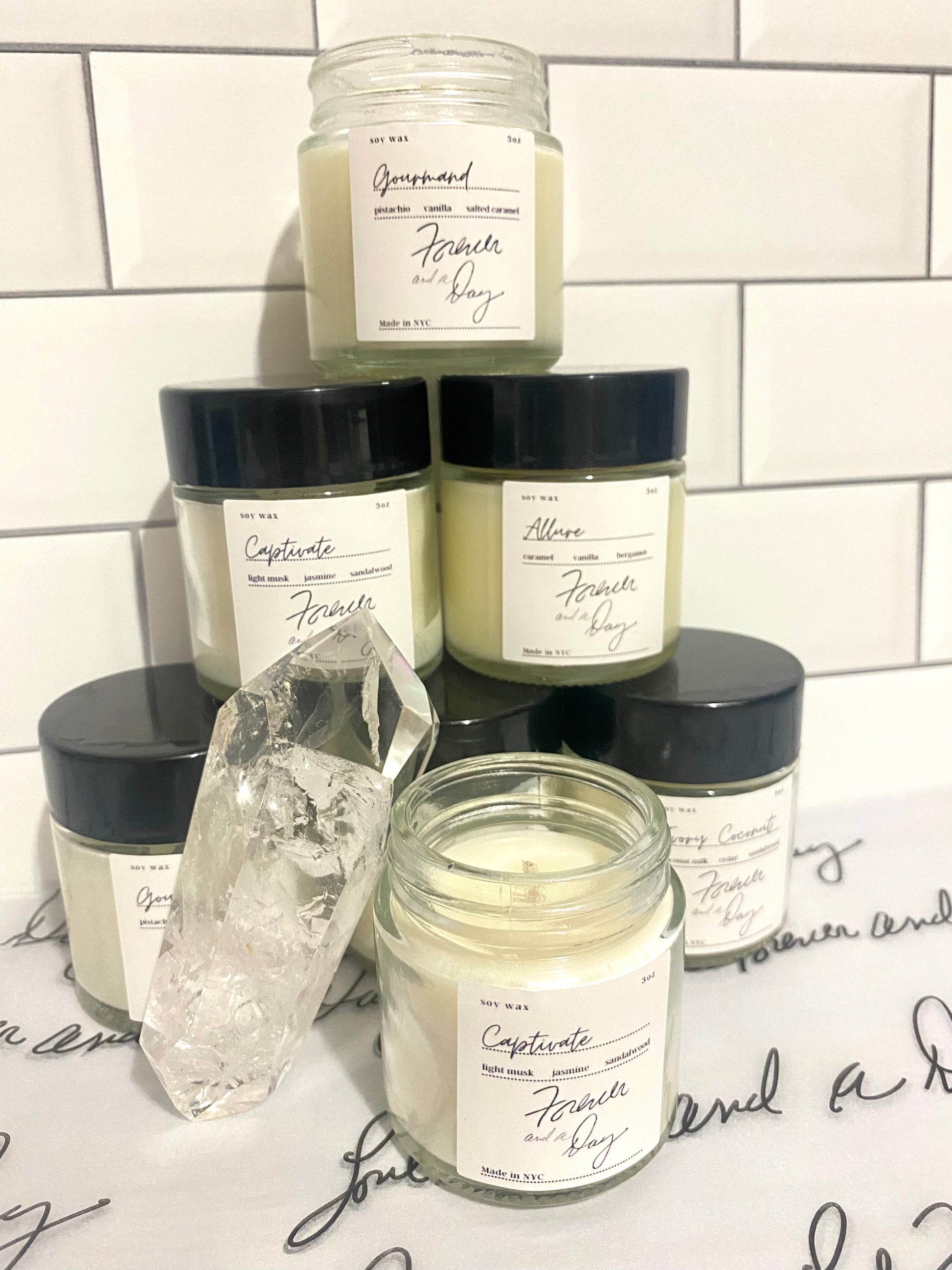Our new fun sized candles are perfect for travelers or even to place in small nooks around the house. The black safety top is perfect for throwing in your carry on or your purse and hopping on that plane. These are a great way to make your hotel room feel a little more cozy :)