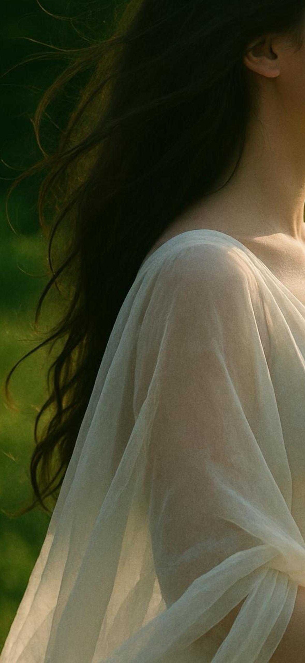 Whispered Aura is a fragrance that clings to the air like a secret only you’re meant to hear. Delicate top notes of white peach and soft aldehydes shimmer like light on sheer fabric, giving way to a heart of orange blossom and airy florals that feel weightless and radiant. A soft blend of musk, blonde woods, and vanilla grounds the scent in a quiet veil — clean, subtle but impossible to forget. It doesn’t need to speak — its presence is already felt.
